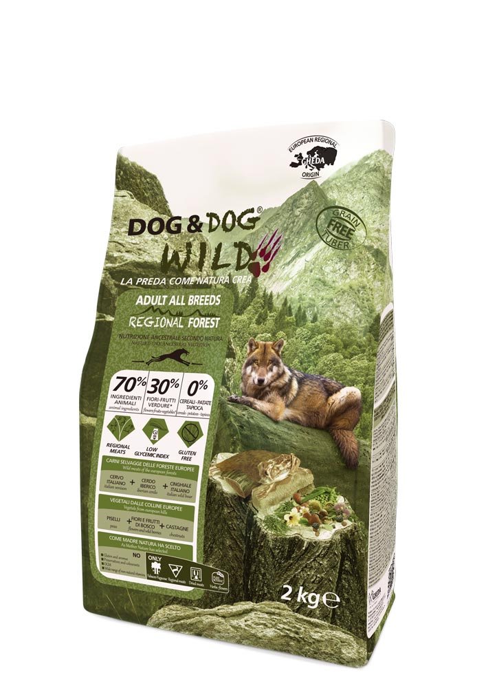 Il richiamo della foresta, in ogni crocchetta. Dog&Dog Wild Regional Forest è un alimento completo ultra-premium, olistico e grain free, ispirato alla dieta originale dei lupi: carni selvatiche delle foreste europee, ingredienti botanicamente puri e zero cereali, per i cani che portano ancora dentro di sé l’istinto del predatore.